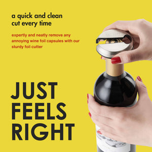 • A QUICK AND CLEAN CUT EVERYTIME - Most people struggle to claw off the annoying foil cap that stands in the way of them and their wine. Now with the Vintorio Foil Cutter, you can expertly and neatly remove wine foil capsules all with one simple twist!