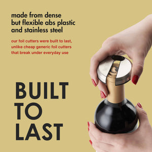 • MADE WITH QUALITY MATERIALS FOR DURABILITY - The Vintorio Foil Cutter is made from dense but flexible abs plastic and stainless steel. This means that our foil cutters were built to last, unlike cheap generic foil cutters that break under everyday use.