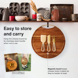 Vintorio Round Wooden Cheese Board with Handle and Cheese Knives