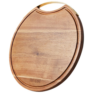 • Gouda Design - Elegantly made with impeccable craftsmanship. The smooth, natural acacia wood is durable yet gentle on knives, sustainable, and water-resistant. The stainless steel handle in a brushed gold finish resists corrosion and stands the test of time.